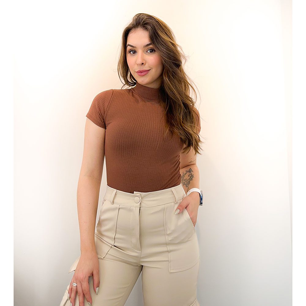 Blusa Manga Curta Gola Alta Marrom