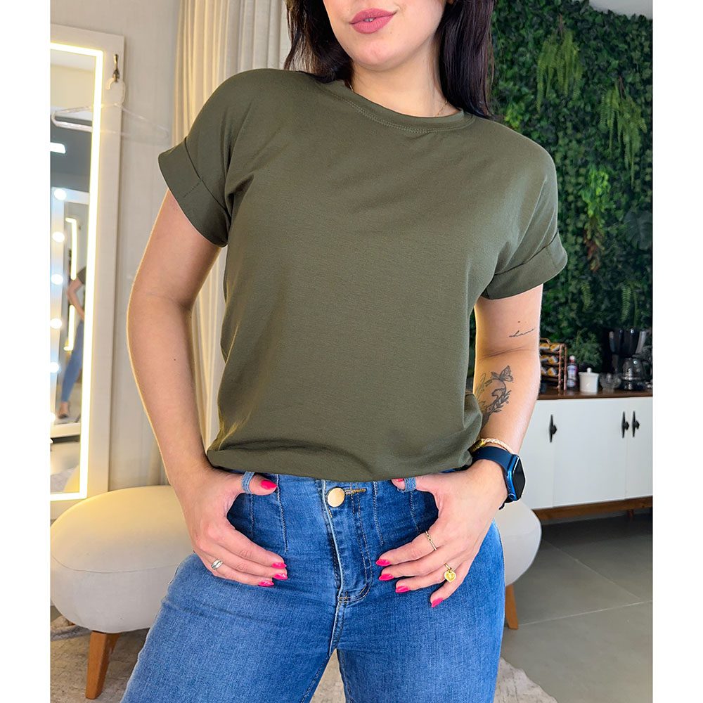 Blusa Feminina, manga curta, viscolycra com elastano.