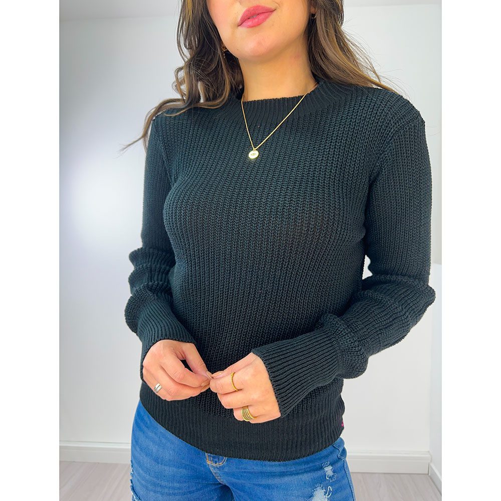 Blusa em Tricot, com manga sanfonada, dando um toque especial na peça. Peça quentinha e estilosa.
