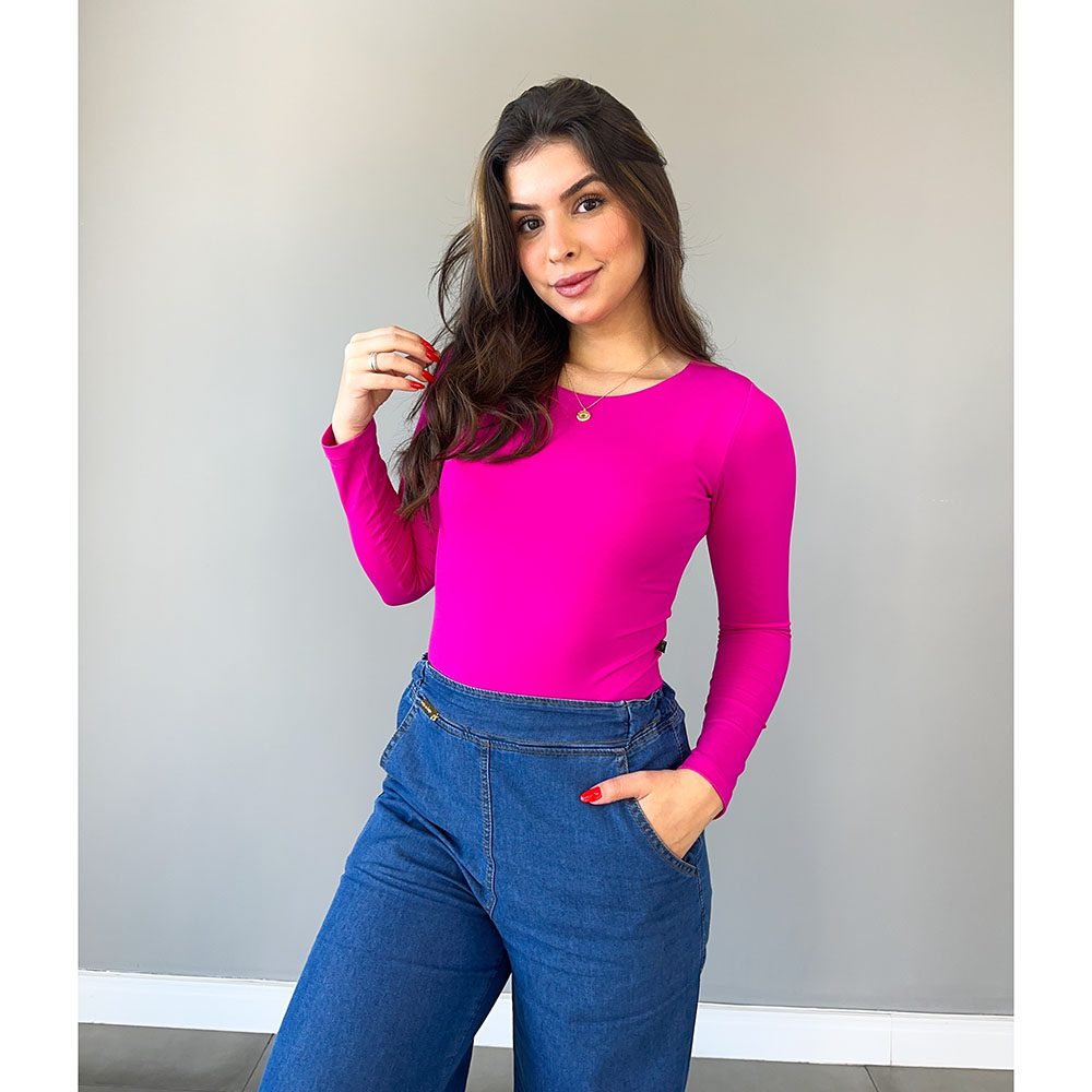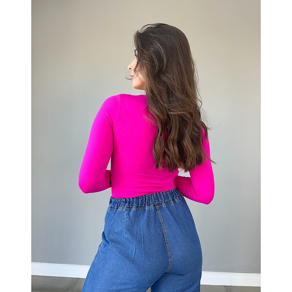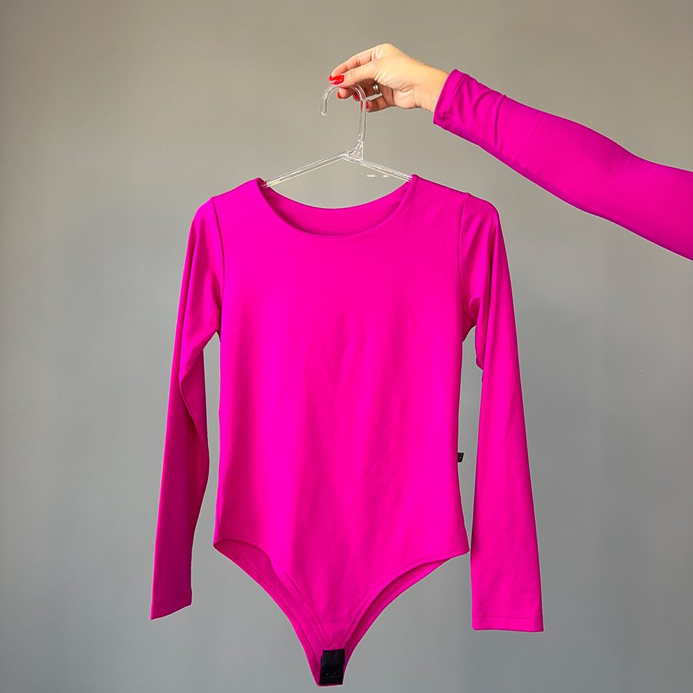 Body em Poliamida Fúcsia Manga Longa