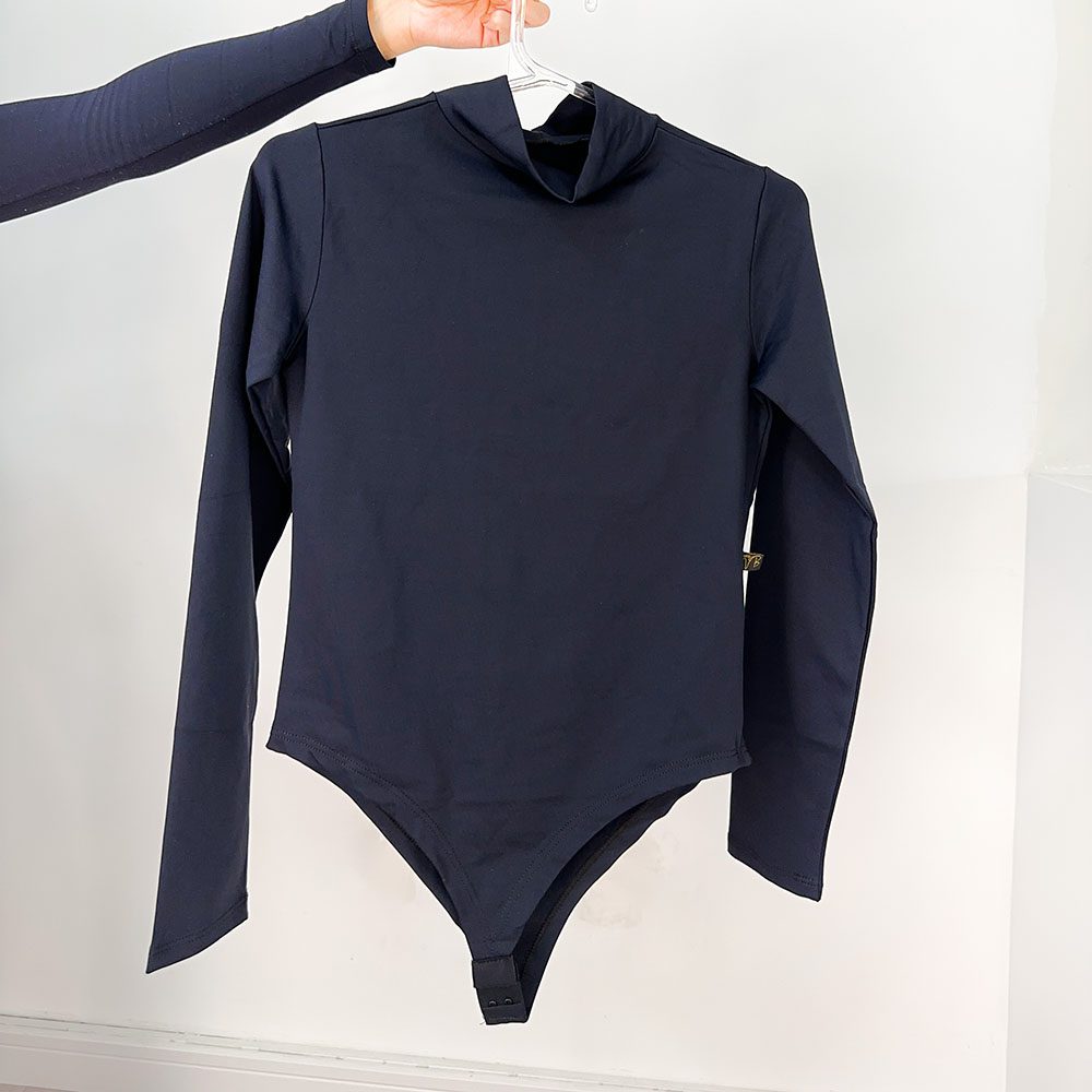 Body em Poliamida, gola alta, manga longa.