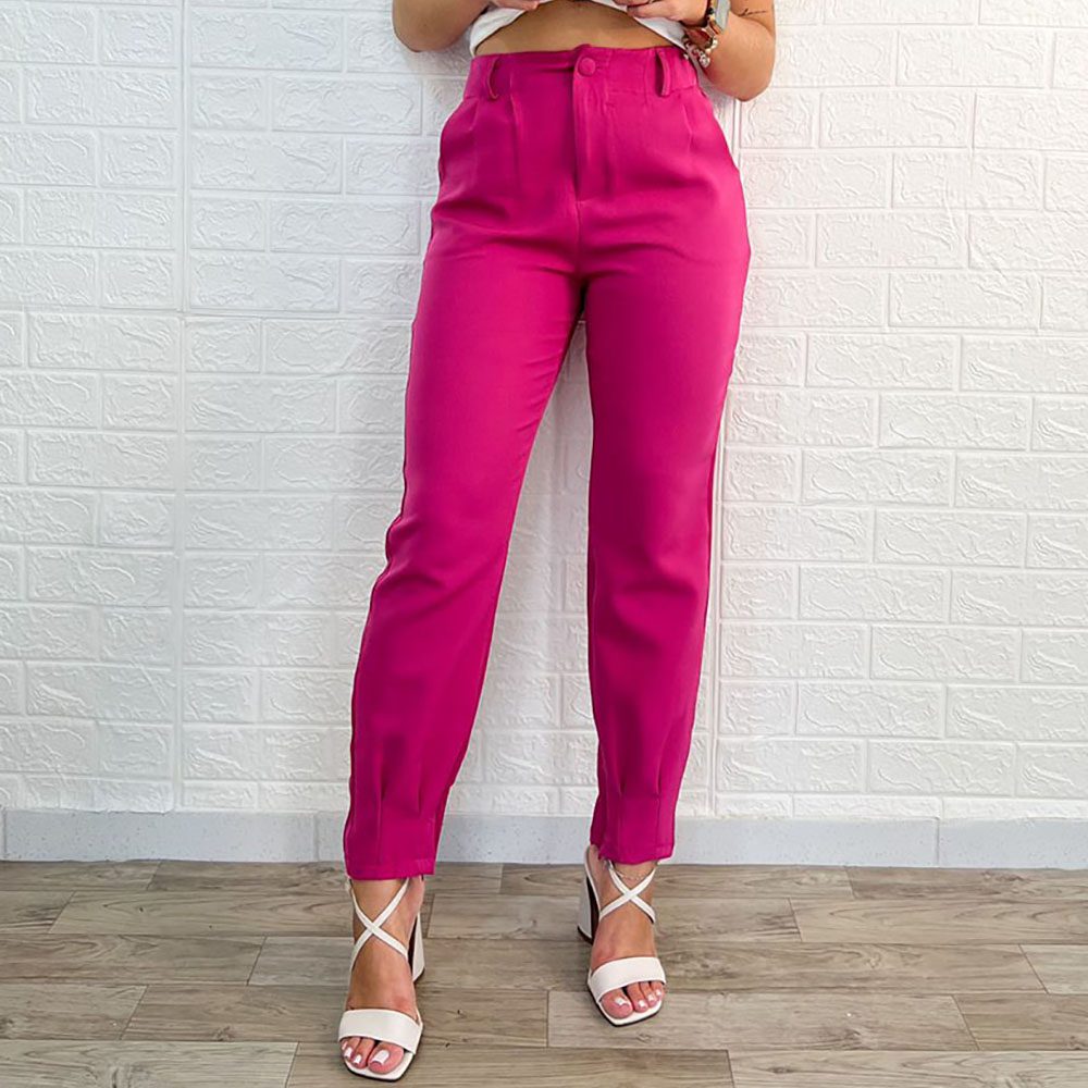 Calça Alfaiataria com dois bolsos laterais, cintura alta, abertura e fechamento em zíper.