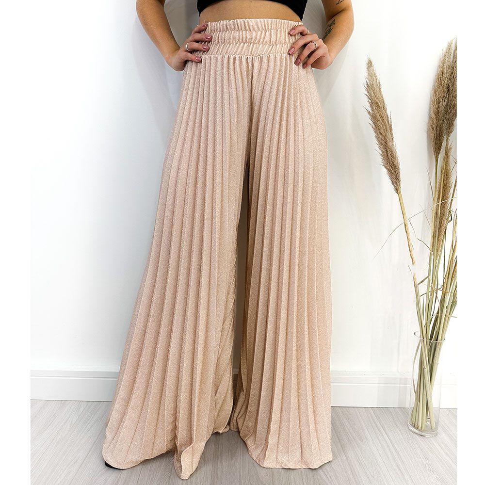 Calça Pantalona Plissada Rose
