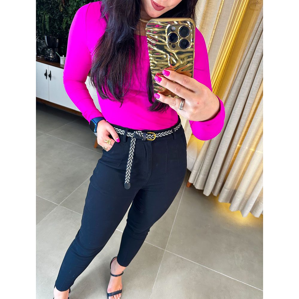 Calça tecido sarja com cinto.