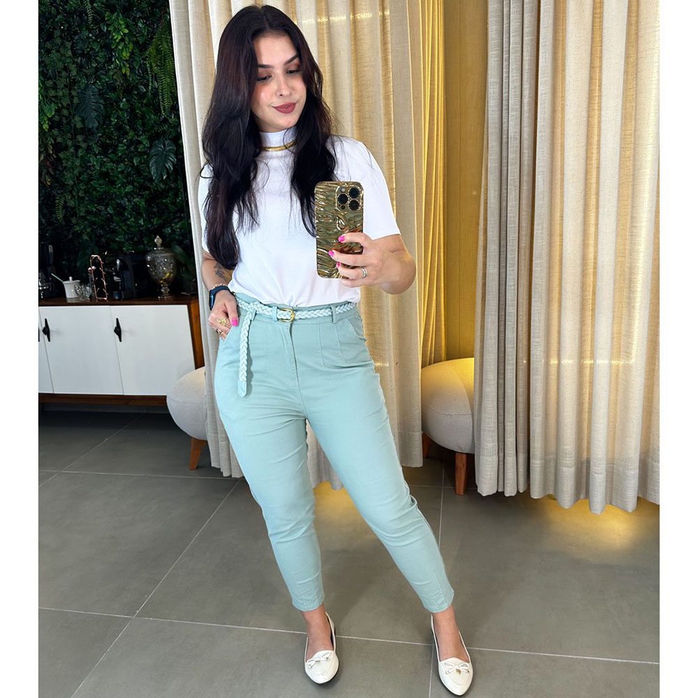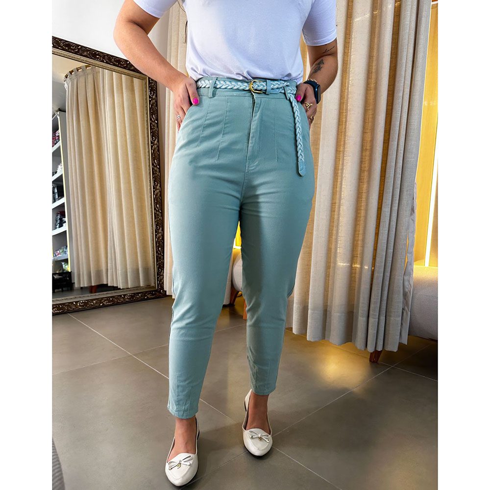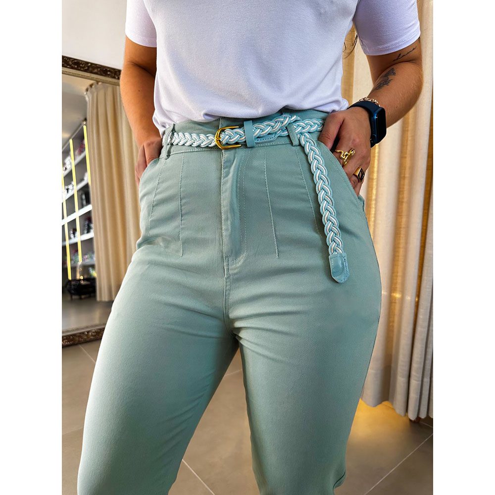 Calça tecido sarja com cinto.
