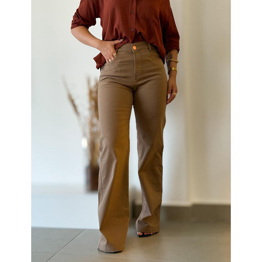 Calça Sarja Pantalona Caqui
