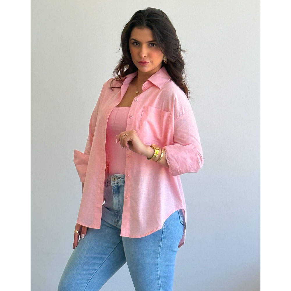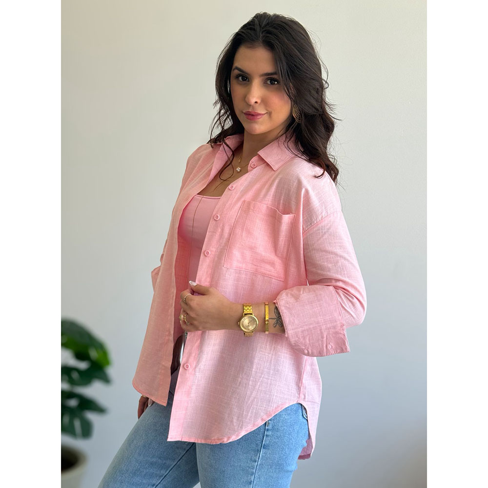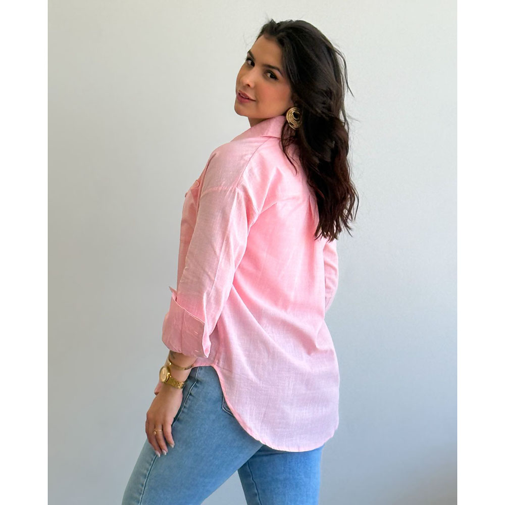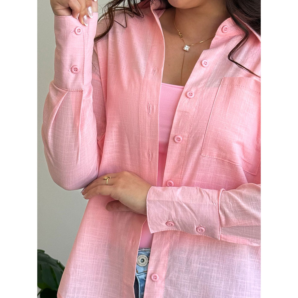 Camisa em tecido algodão, possui aberturas nas laterais e fechamento por botões, apresenta bolso na frente e mangas com dois botões para ajuste. A parte de trás é levemente alongada, é a peça ideal para compor looks sofisticados e versáteis, perfeita para o dia a dia com um toque de elegância.