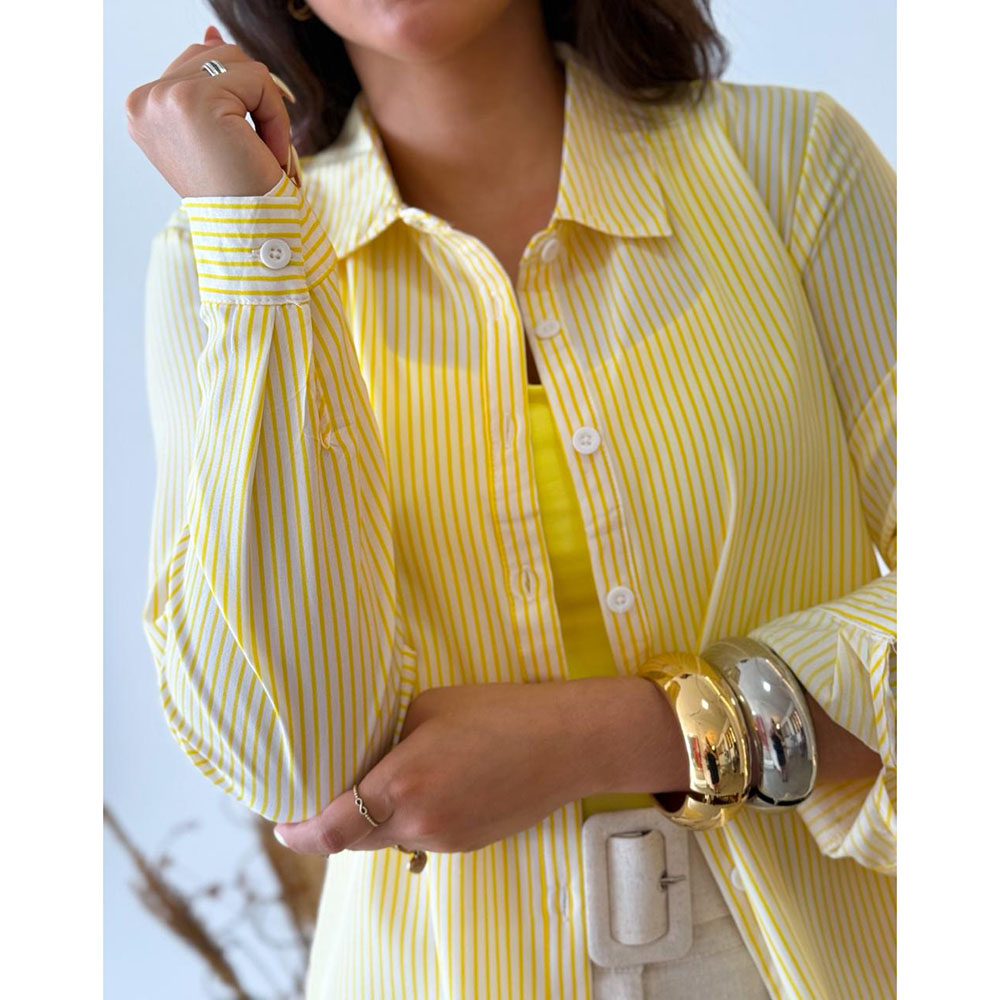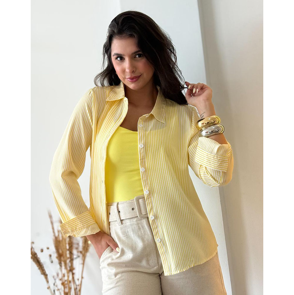 Camisa listrada em tecido crepe, com abertura e fechamento em botões. Possui modelagem alongada na parte de trás, uma peça coringa no seu guarda-roupas, super versátil que te permite usar de várias formas.