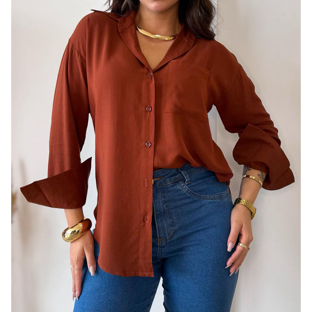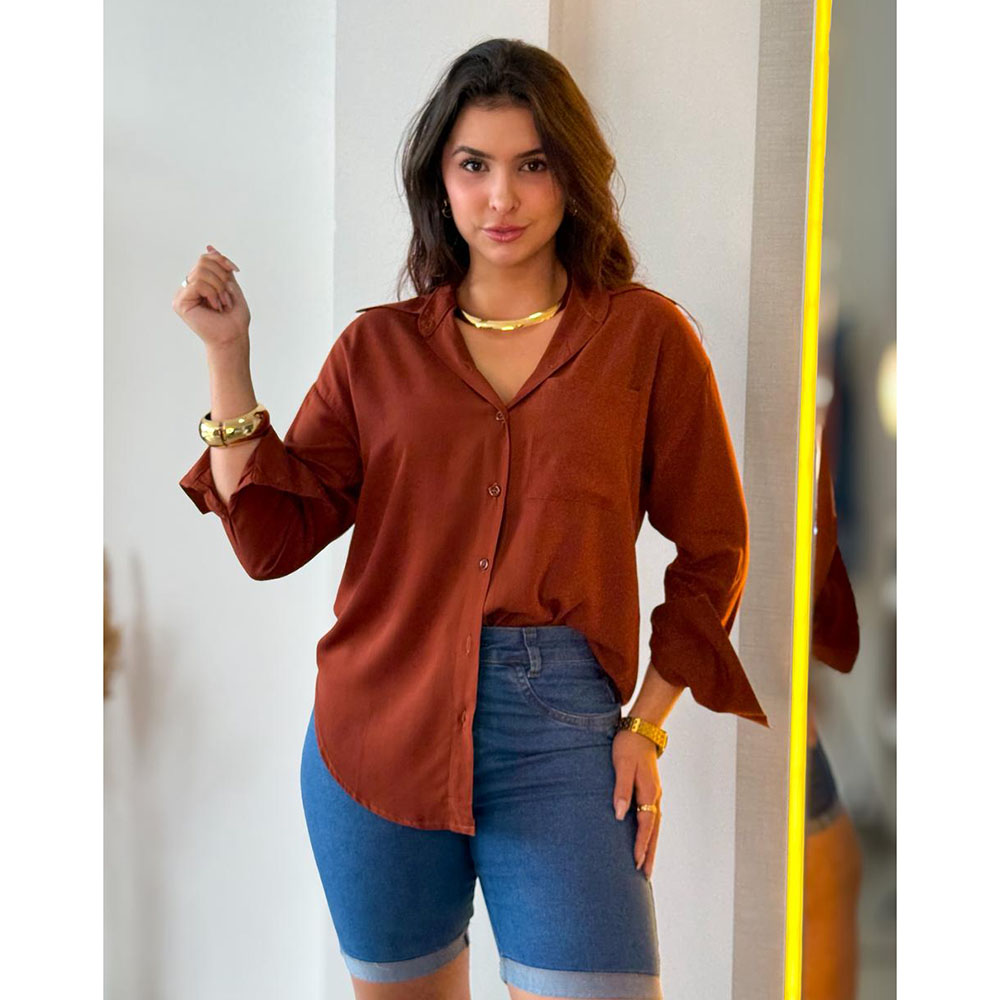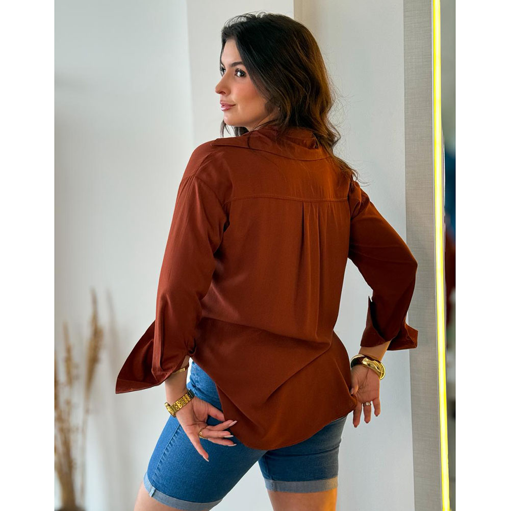 Camisa em tecido viscolinho, com abertura e fechamento em botões. e modelagem levemente alongada nas costas, garantindo um visual moderno e elegante. Versátil e atemporal, é perfeita para compor desde looks casuais até produções mais sofisticadas.