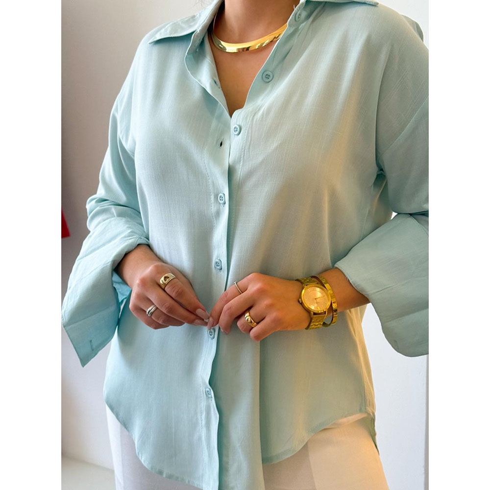 Camisa confeccionada em viscolinho, com abertura e fechamento em botões. Possui modelagem alongada na parte de trás, proporcionando um estilo versátil, é ideal tanto para combinações do dia a dia quanto para composições mais elegantes