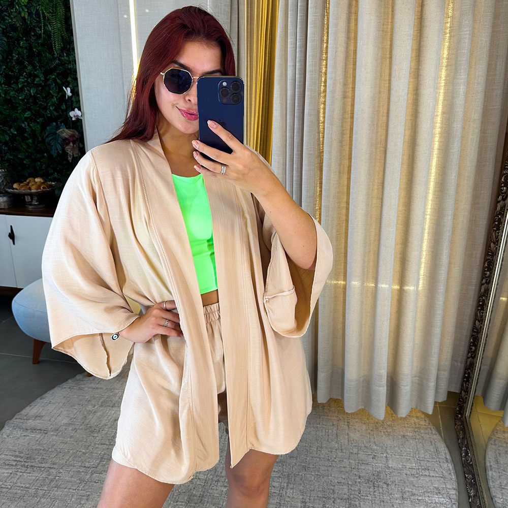 Conjunto Kimono e Short em Tecido Viscolinho.