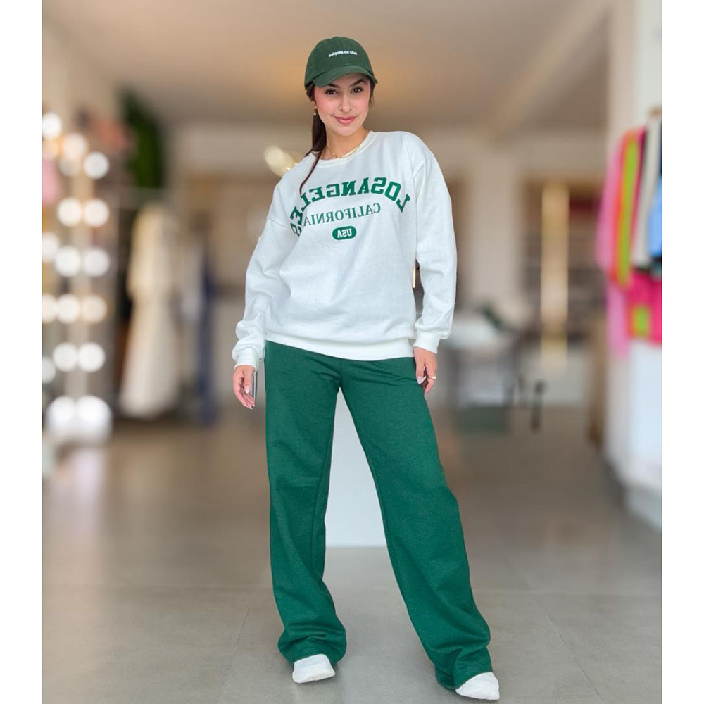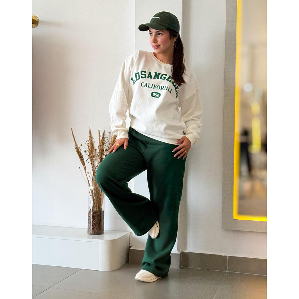 Conjunto de moletom composto por blusa de manga longa com estampa frontal. A calça possui elástico no cós e bolsos laterais. Um modelo que une conforto e estilo, perfeito para compor looks casuais e modernos no dia a dia.