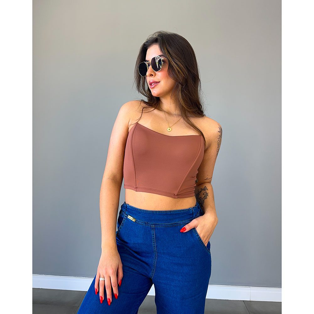 Cropped Corselet em Poliamida Marrom