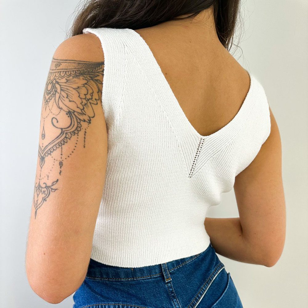 Cropped em Tricot Modal, gola V,.