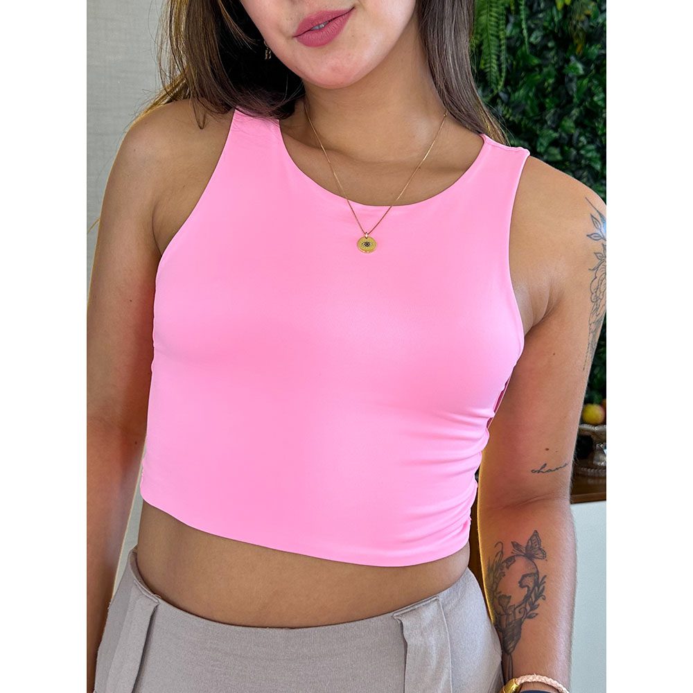 Cropped Regata em poliamida, lycra dupla no busto, zero transparência.