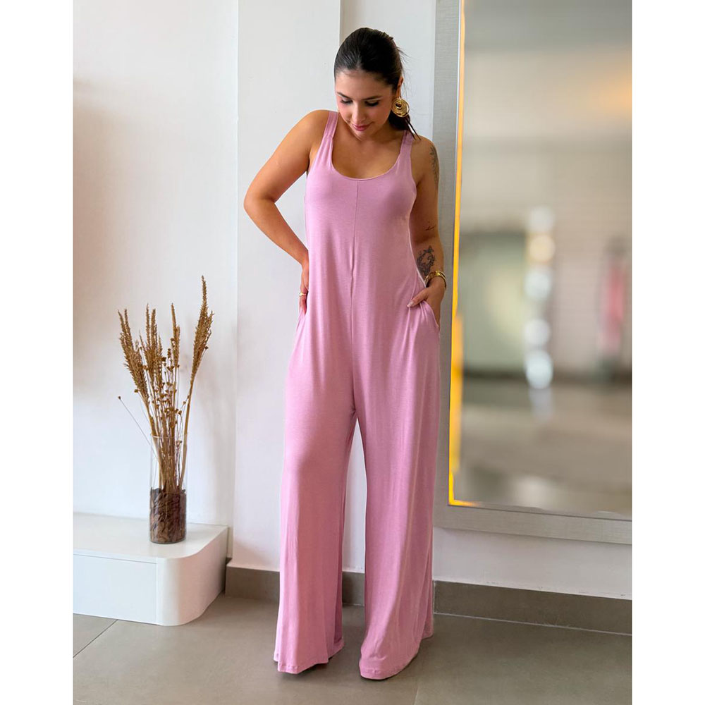 Macacão em tecido viscolycra, modelo regata com decote podendo usar dos dois lados, decote V ou decote redondo. Com dois bolsos na parte da frente.