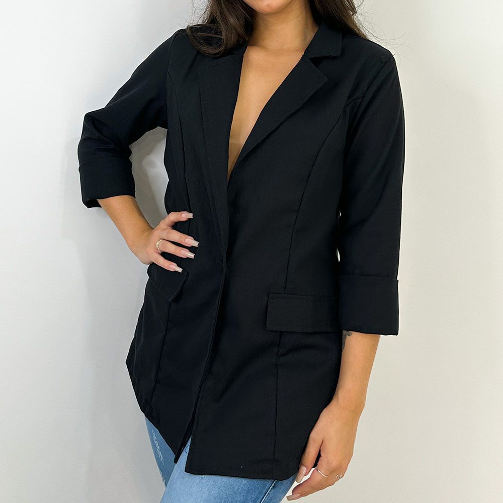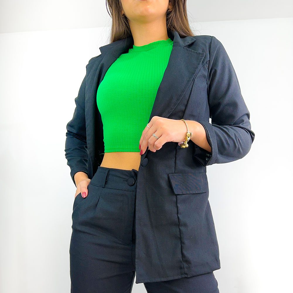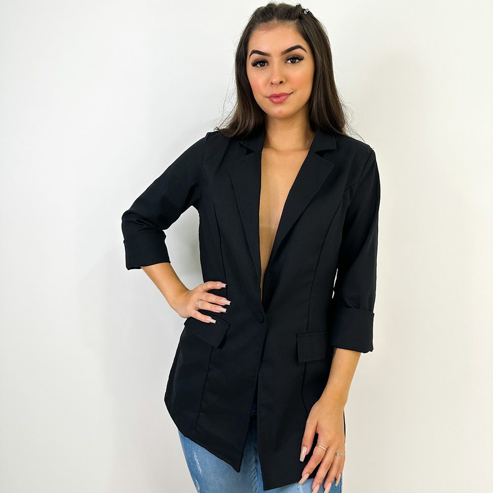 Max Blazer em Linho, dois bolsos fake, abertura e fechamento com botão forrado.