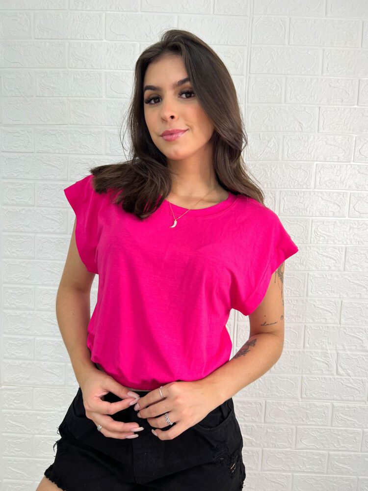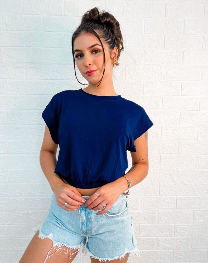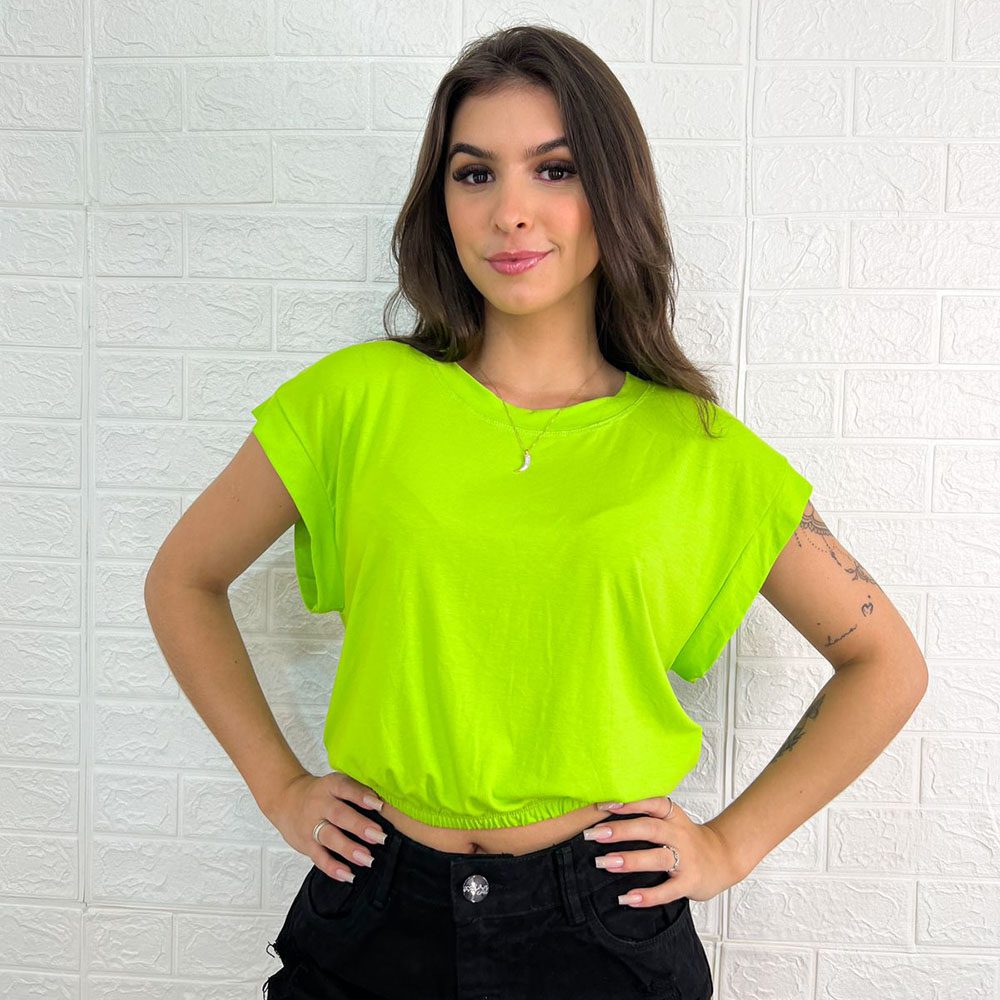 Regata cropped Feminina, gola redonda, com elastico na cintura.
