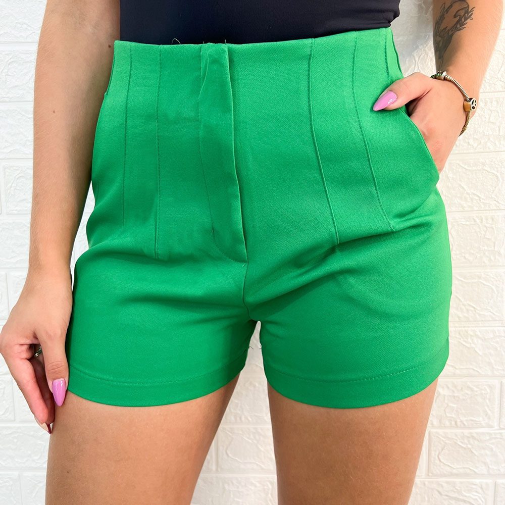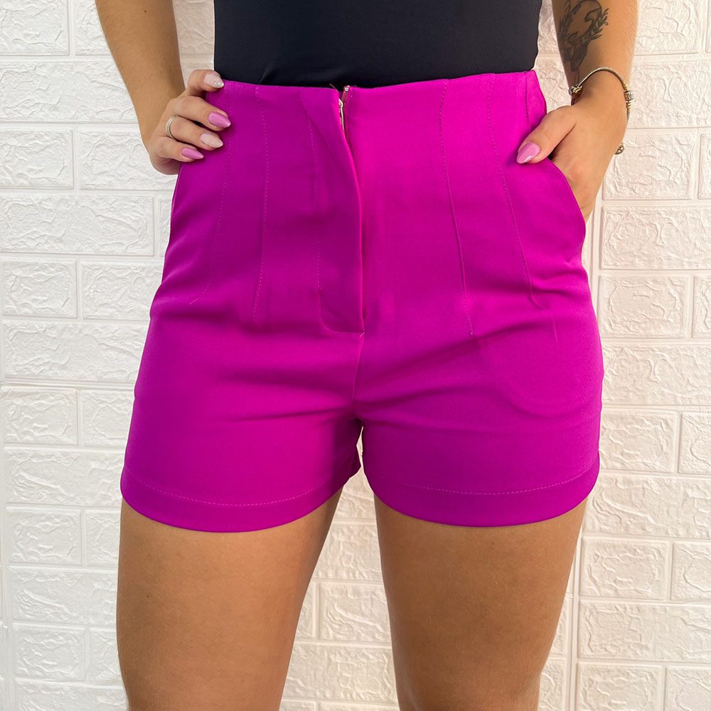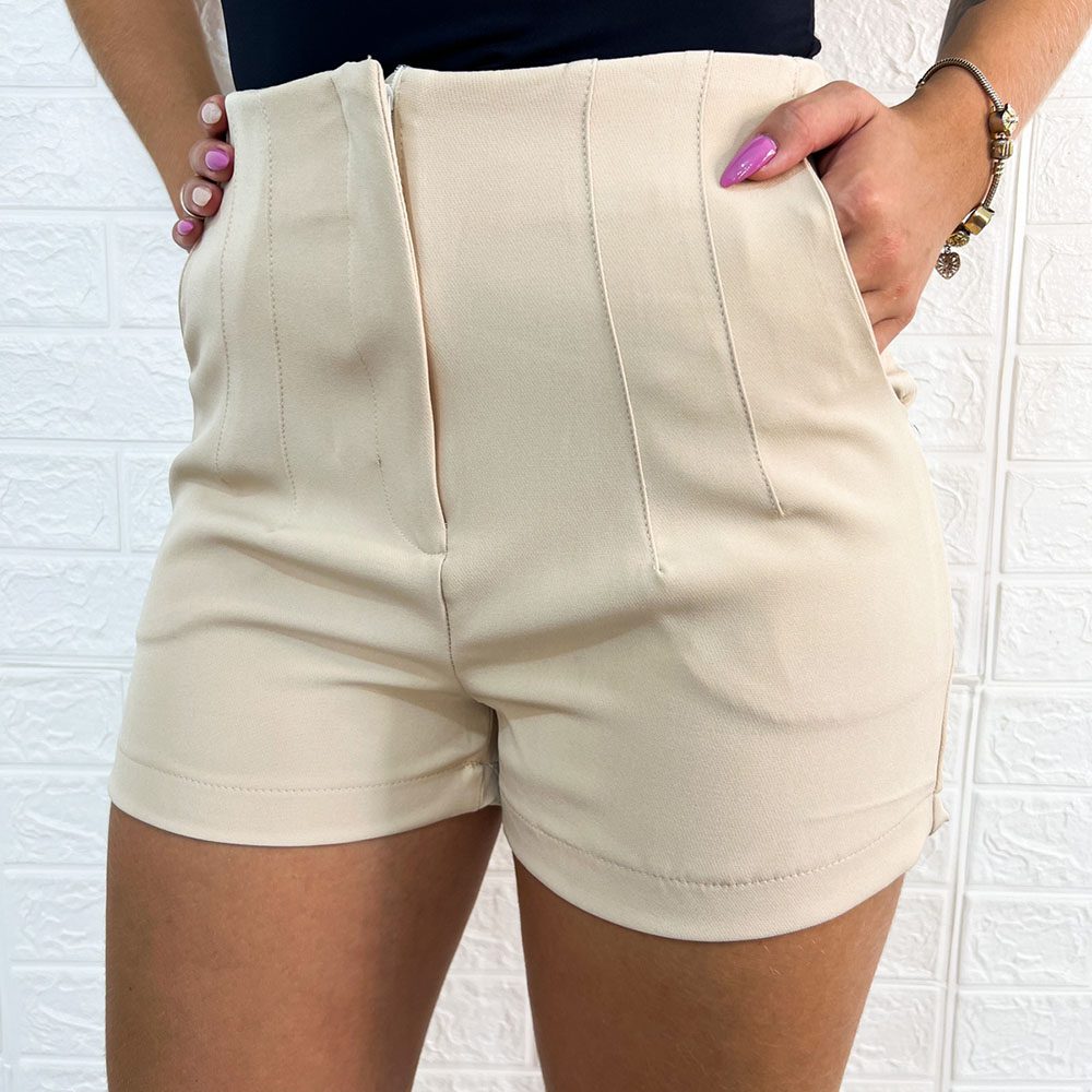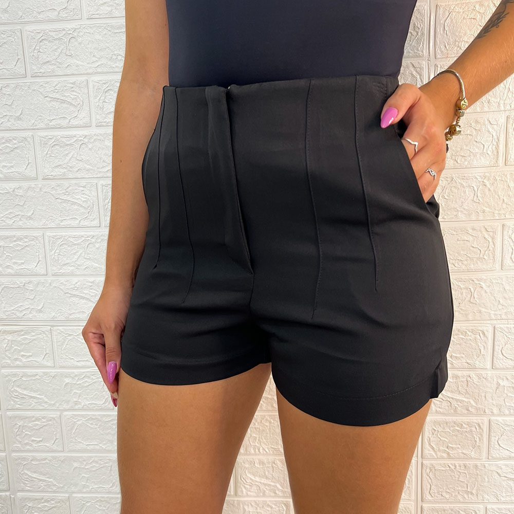 Short Alfaiataria com Bolsos laterais, aberura e fechamento em zíper.