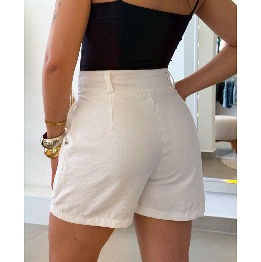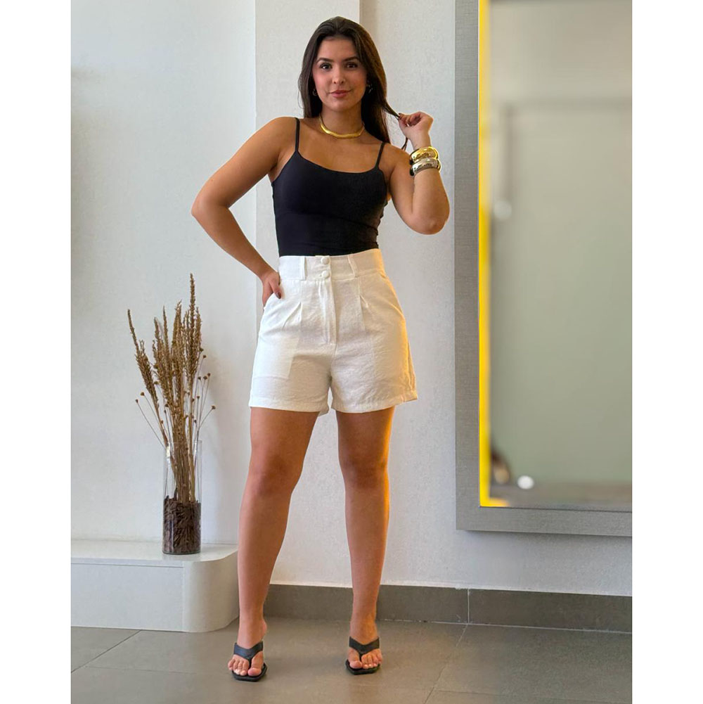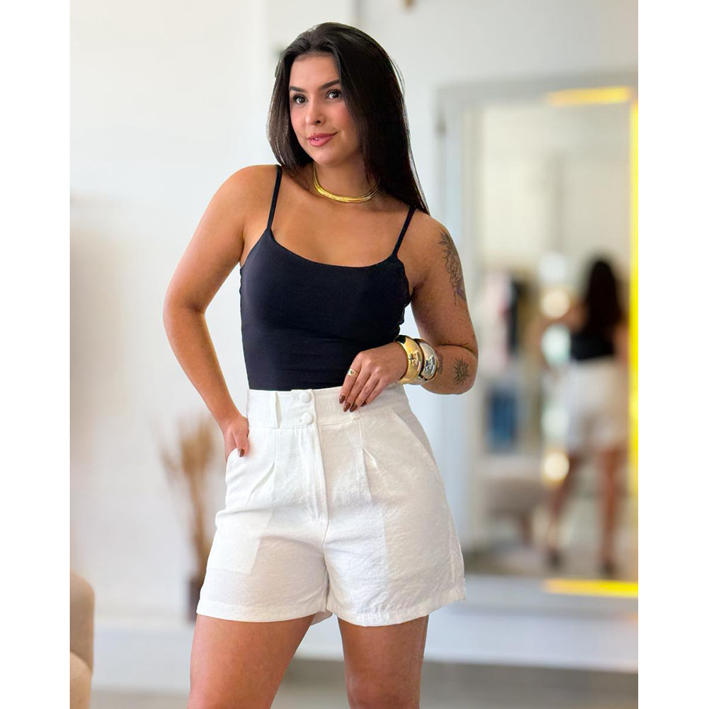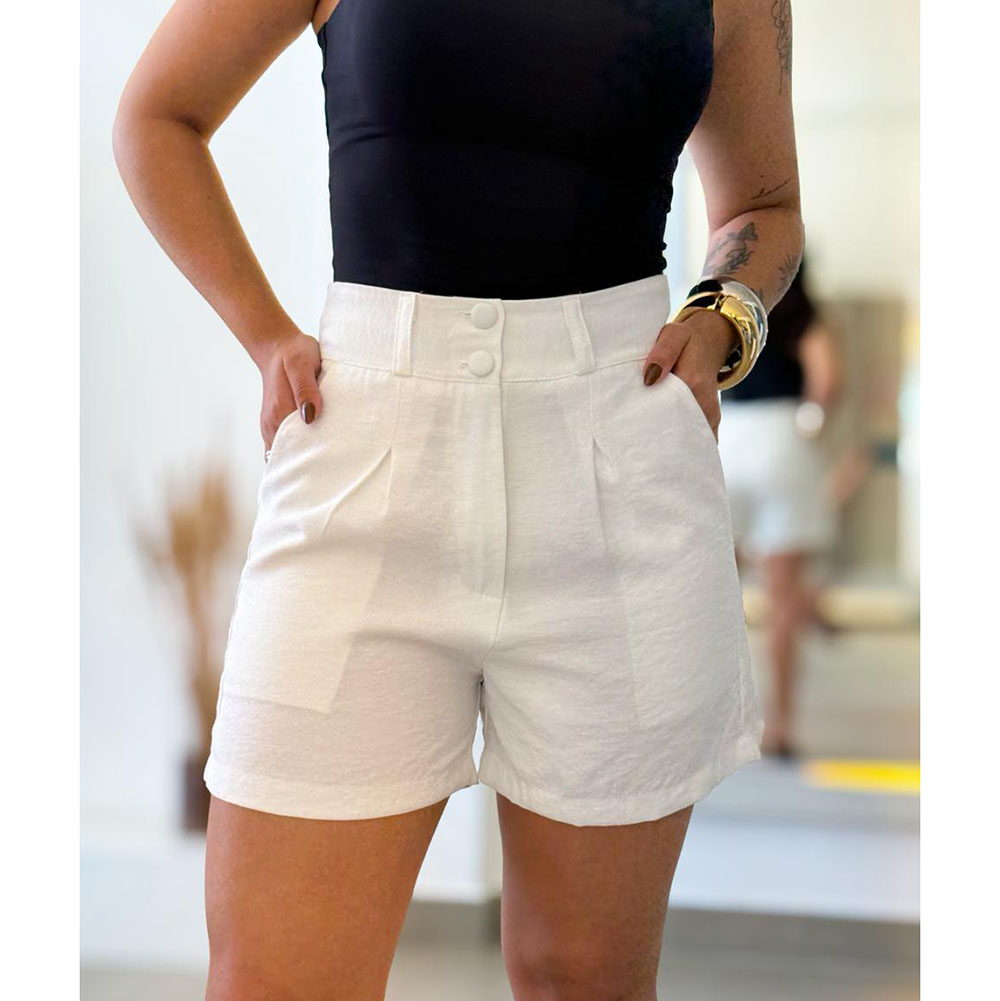 Short confeccionado em tecido Marrant, proporcionando caimento elegante e confortável. Possui dois bolsos frontais e fechamento frontal por zíper com dois botões. Versátil, é ideal para compor looks casuais ou produções mais sofisticadas.
