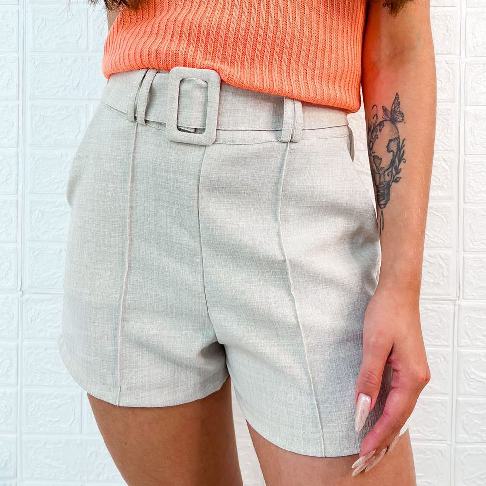 Short Social, em crepe, com cinto, dois bolsos laterais, abertura e fechamento em zíper.