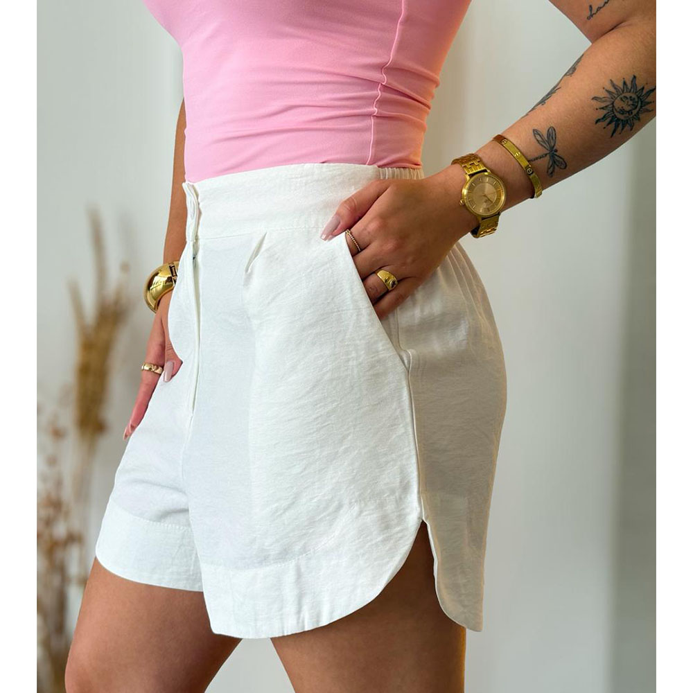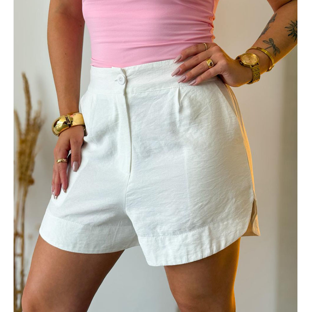 Short confeccionado em tecido Marrant, oferecendo caimento elegante e confortável. Possui dois bolsos laterais funcionais e cós com elástico na parte de trás, garantindo melhor ajuste ao corpo. O fechamento frontal em zíper e botão. É ideal tanto para compor looks casuais quanto para ocasiões mais sofisticadas.