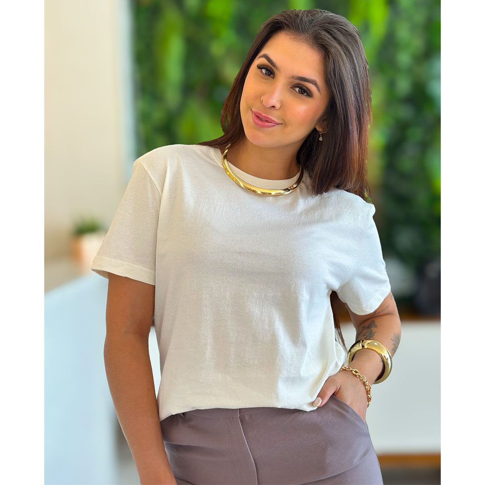 Reforço de Ombro a Ombro, Gola ribana com largura de 1,5cm e Gramatura 160.