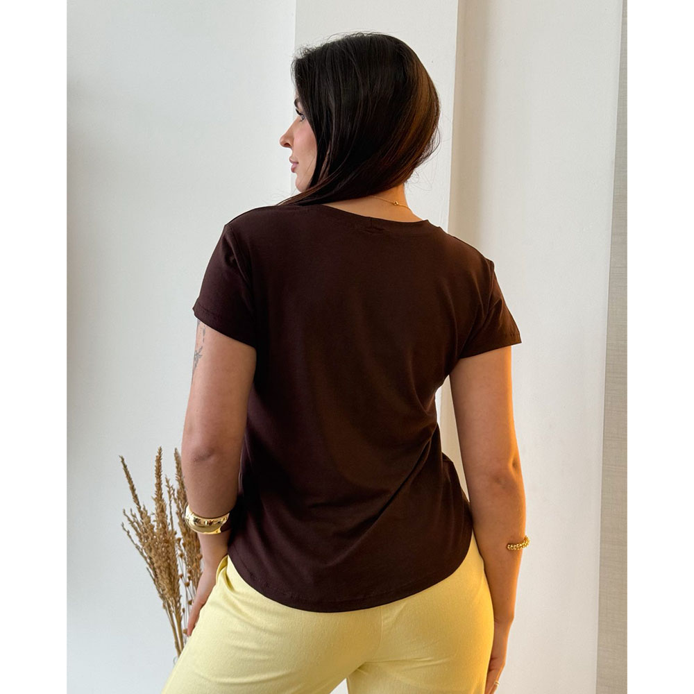 T-shirt em tecido Viscolycra, tecido com elastano que proporciona conforto e caimento leve. Modelo com mangas, ideal para o dia a dia.