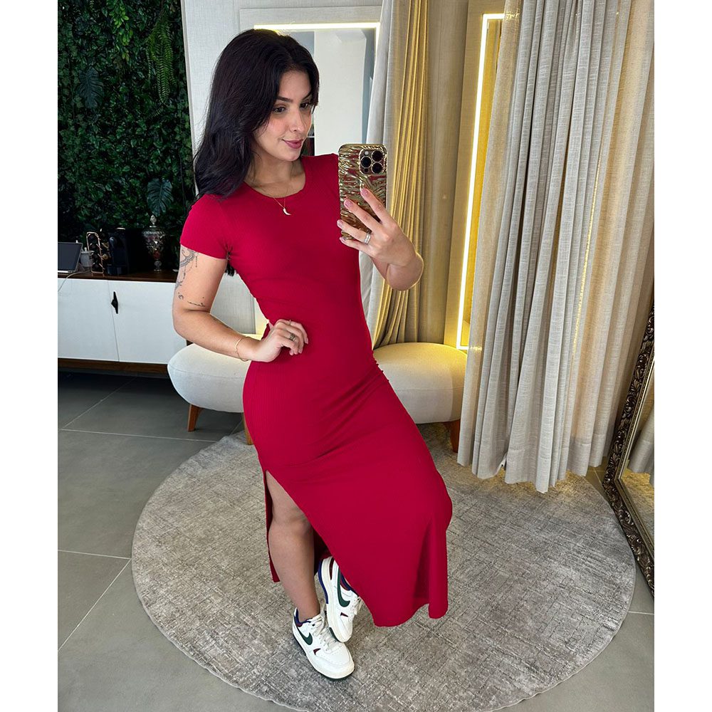 Seja o primeiro a avaliar “Vestido Canelado Lais Vermelho”