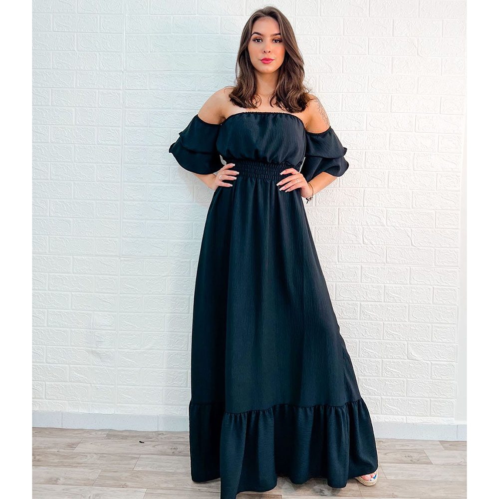 Vestido Longo, Ciganinha, em Duna, com bojo, cintura em latex, com forro.