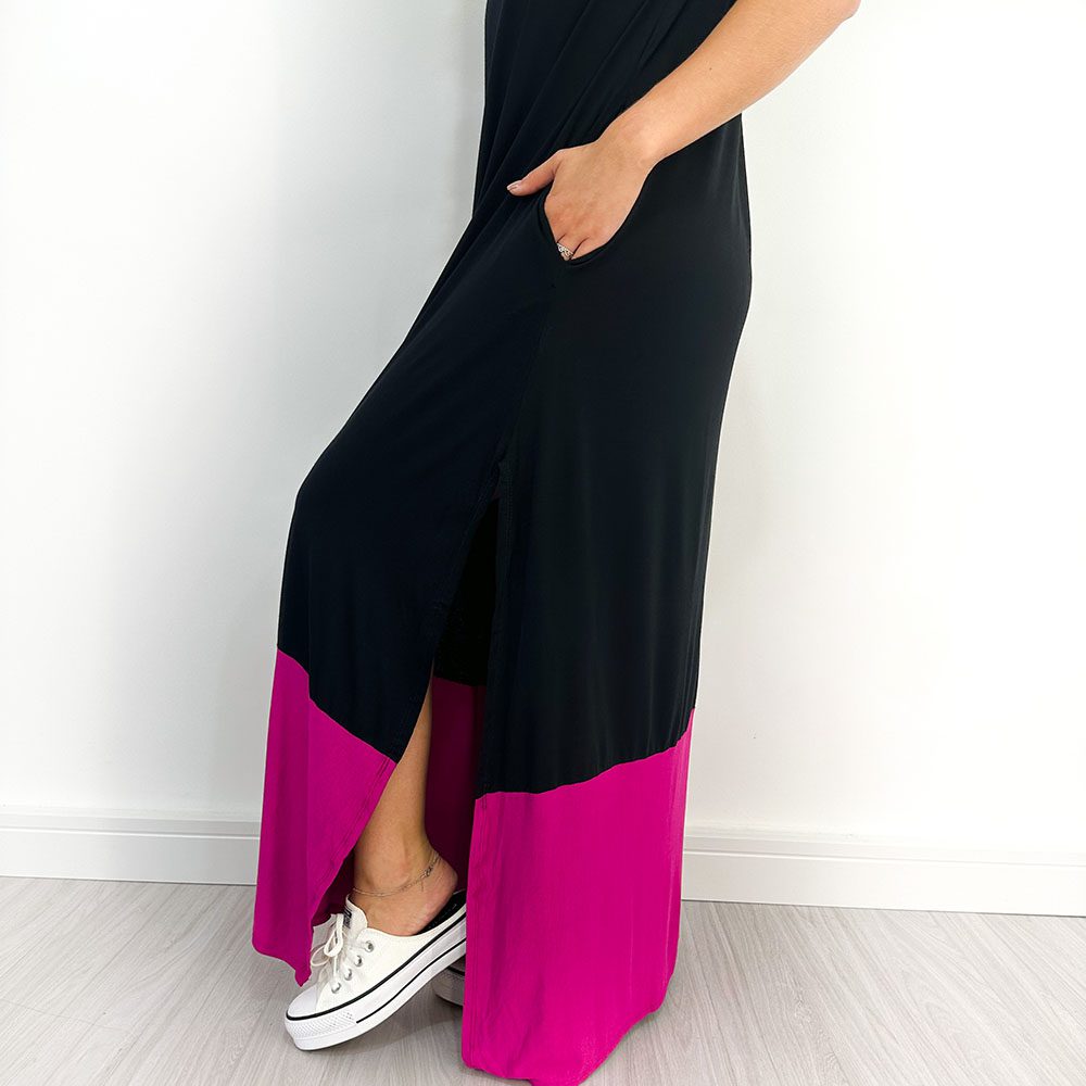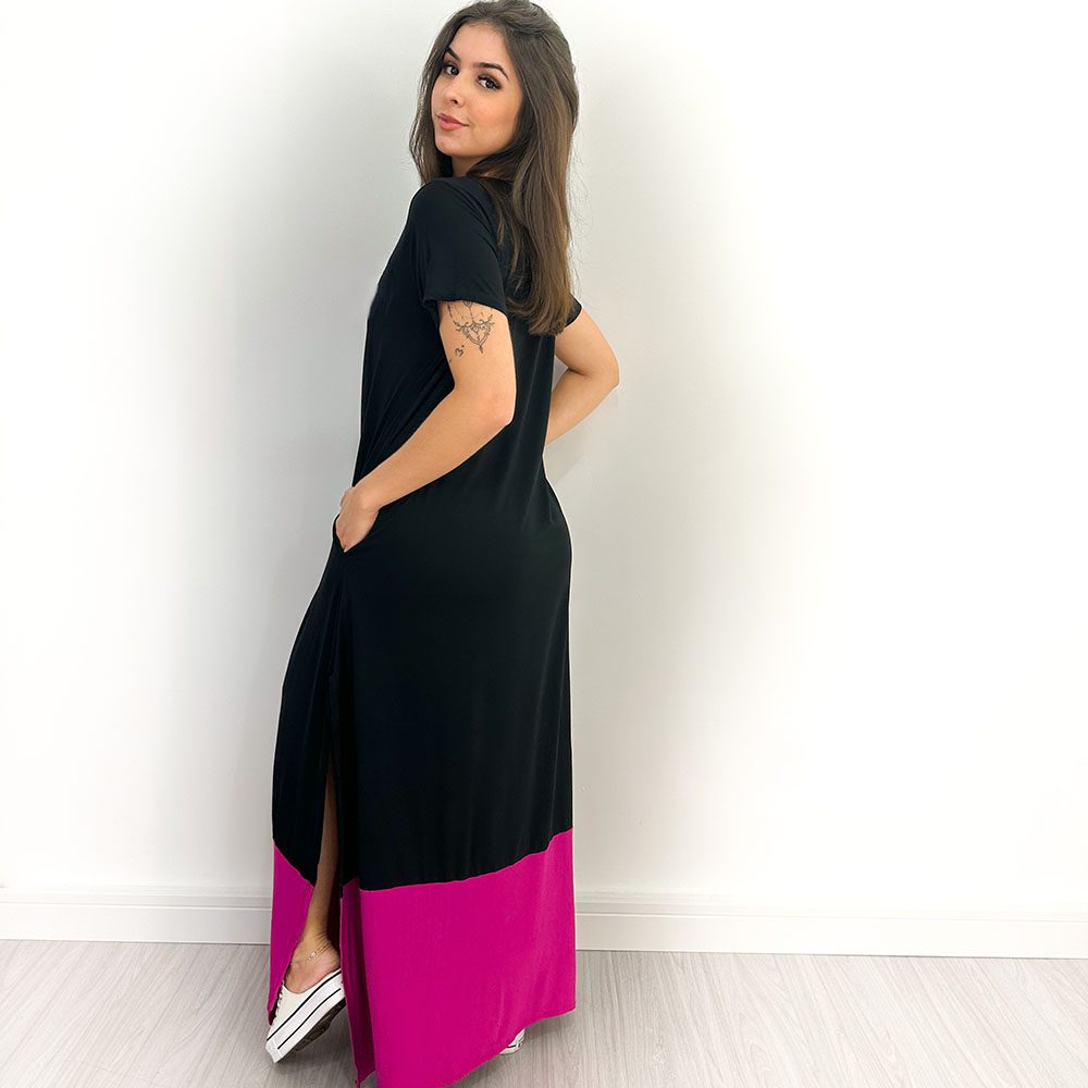 Seja o primeiro a avaliar “Vestido Longo em Malha Preto com Fucsia”