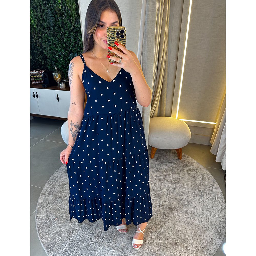 Vestido longo em Viscolinho, com alça regulável. Super leve e fluído.