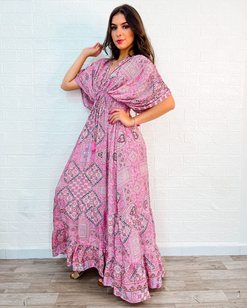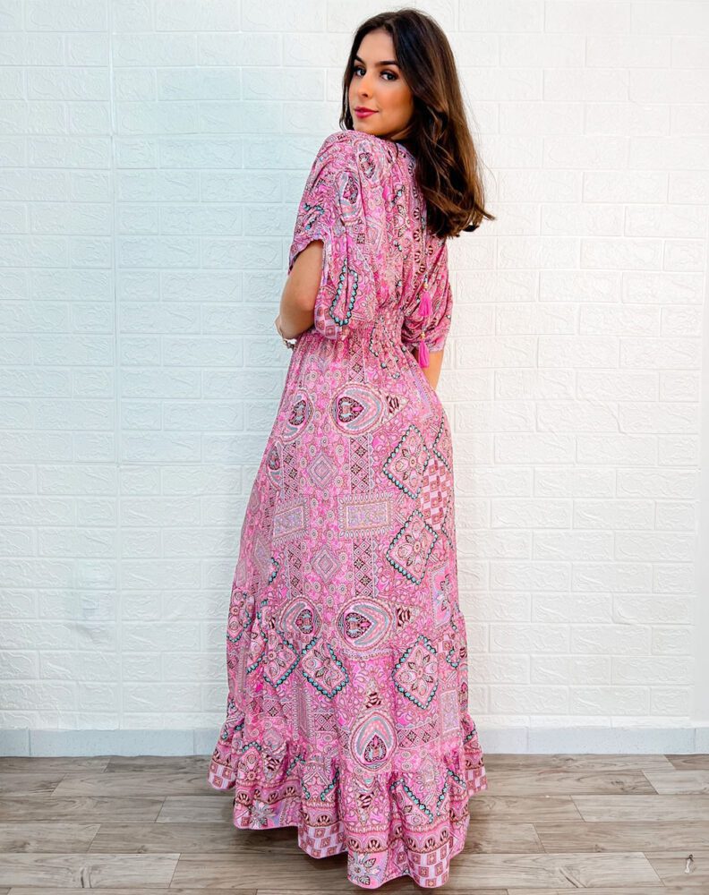 Seja o primeiro a avaliar “Vestido Longo Indiano Estampado Rosa”