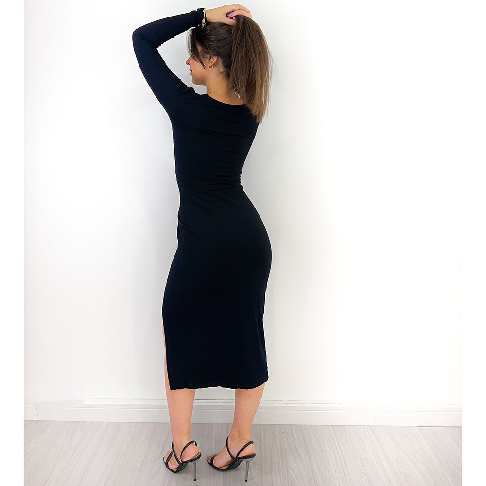 Seja o primeiro a avaliar “Vestido Midi Canelado com Fenda Preto”